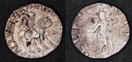 | Description / विवरण | Descrpn./Obv Diademed king on horseback to r., wearing armour and holding spear; Greek legend, Basileos Megalou / Spalirisou. Descrpn./Rev Zeus radiate, standing facing, holding long scepter in left hand and thunderbolt in outstretched hand; Kharoshthi legend, Maharajasa mahatakasa /Ayasa |