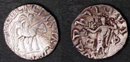 | Description / विवरण | Descrpn./Obv Diademed king on horseback to r., wearing armour and holding spear; Greek legend, Basileos Megalou / Spalirisou. Descrpn./Rev Zeus radiate, standing facing, holding long scepter in left hand and thunderbolt in outstretched hand; Kharoshthi legend, Maharajasa mahatakasa /Ayasa |