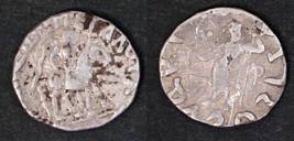 | Description / विवरण | Descrpn./Obv Diademed king on horseback to r., wearing armour and holding spear; Greek legend, Basileos Megalou / Spalirisou. Descrpn./Rev Zeus radiate, standing facing, holding long scepter in left hand and thunderbolt in outstretched hand; Kharoshthi legend, Maharajasa mahatakasa /Ayasa |