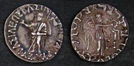| Description / विवरण | Descrpn./Obv Zeus standing left, holding long sceptre; Greek legend, Basileos Basileon Megalou / Azou. Descrpn./Rev Winged Nike standing right, holding wreath and palm; Kharoshthi legend, Maharajasa rajarajasa mahatasa / Ayasa |