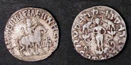 | Description / विवरण | Descrpn./Obv King holding whip, mounted on horse walking right; Greek legend, Basileos Basileon Megalou / Azilisou. Descrpn./Rev Lakshmi standing facing upon lotus, flanked by two elephants on lotus leaves anointing her with water; Kharoshthi legend Maharajasa Rajadirajasa Mahatasa Ayilishasa |