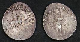 | Description / विवरण | Descrpn./Obv King holding whip, mounted on horse walking right; Greek legend, Basileos Basileon Megalou / Azilisou. Descrpn./Rev One dioscuros standing facing, holding long upright spear; Kharoshthi legend, Maharajasa Rajadirajasa Mahatasa / Ayilishasa |