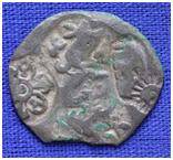 | Description / विवरण | The coin is an imperial type Punch- marked coin. The shape of the coin is Oval. Obverse Sun, six armed, animal, taurine and other symbols are indistinct. Reverse Symbols are minute. |