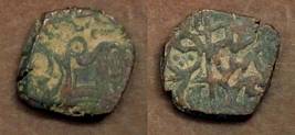 | Description / विवरण | Descrpn./Obv Recumbent bull facing left, wearing jhula (saddle cloth). Above, legend in Sarada script Sri Samantadeva (in cursive letters, mostly truncated and seen partially or off the flan). Descrpn./Rev Rider with lance on caparisoned horse facing right. |