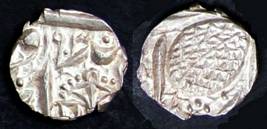 | Description / विवरण | Descrpn./Obv In the centre, a chhatra with Sa and Ta in Gurumukhi script on the left and right of its shaft; traces of the Persian legend seen on the obverse of the bigger Nanakshahi coins of Amritsar mint are also seen. Descrpn./Rev Big peepal leaf and traces of the Persian legend seen on the reverse of the bigger Nanakshahi coins of Amiritsar mint - Shri Amritsarjiv zarb [VS Year] Takht maimanat julus manus Akal Bakht. Especially traces of alif of Akal and te of Takht and maimanat are seen |
