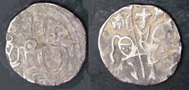 | Description / विवरण | Descrpn./Obv Recumbent bull facing left, wearing jhula (saddle cloth), with trisula (trident) symbol on rump. Above, legend in Sarada script Sri Samantadeva . Descrpn./Rev Rider with lance on caparisoned horse facing right. On left, Sarada letter bhi and on right, Sarada letter ta |