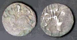 | Description / विवरण | Descrpn./Obv Recumbent bull facing left, wearing jhula (saddle cloth), with trisula (trident) symbol on rump. Above, legend in Sarada script Sri Samantadeva . Descrpn./Rev Rider with lance on caparisoned horse facing right. On left, Sarada letter bhi and on right, Sarada letter ta |