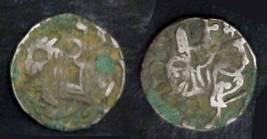 | Description / विवरण | Descrpn./Obv Recumbent bull facing left, wearing jhula (saddle cloth), with trisula (trident) symbol on rump. Above, legend in Sarada script Sri Samantadeva . Descrpn./Rev Rider with lance on caparisoned horse facing right. On left, Sarada letter bhi and on right, Sarada letter ta |