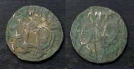 | Description / विवरण | Descrpn./Obv Recumbent bull facing left, wearing jhula (saddle cloth), with trisula (trident) symbol on rump. Above, legend in Sarada script Sri Samantadeva . Descrpn./Rev Rider with lance on caparisoned horse facing right. On left, Sarada letter bhi and on right, Sarada letter ta |