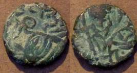 | Description / विवरण | Descrpn./Obv Recumbent bull facing left, wearing jhula (saddle cloth). Above, legend in Sarada script Sri Samantadeva (in cursive letters, mostly truncated and seen partially or off the flan). Descrpn./Rev Rider with lance on caparisoned horse facing right. |