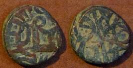 | Description / विवरण | Descrpn./Obv Recumbent bull facing left, wearing jhula (saddle cloth). Above, legend in Sarada script Sri Samantadeva (in cursive letters, mostly truncated and seen partially or off the flan). Descrpn./Rev Rider with lance on caparisoned horse facing right. |
