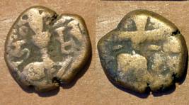 | Description / विवरण | Descrpn./Obv Stylised seated Goddess facing; Sharada legend, Ha (on l.) rsha ra (on r.). Descrpn./Rev Stylised standing king design; Sharada legend, jadeva (on r.) |