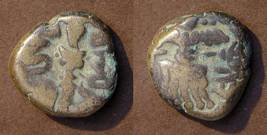 | Description / विवरण | Descrpn./Obv Stylised seated Goddess facing; Sharada legend, Ha (on l.) rsha ra (on r.). Descrpn./Rev Stylised standing king design; Sharada legend, jadeva (on r.) |