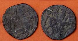 | Description / विवरण | Descrpn./Obv Recumbent bull facing left, wearing jhula (saddle cloth), with trisula (trident) symbol on rump. Above, legend in Sarada script Sri Samantadeva . Descrpn./Rev Rider with lance on caparisoned horse facing right. On left, Sarada letter bhi and on right, Sarada letter ta |