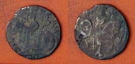 | Description / विवरण | Descrpn./Obv Recumbent bull facing left, wearing jhula (saddle cloth), with trisula (trident) symbol on rump. Above, legend in Sarada script Sri Samantadeva . Descrpn./Rev Rider with lance on caparisoned horse facing right. On left, Sarada letter bhi and on right, Sarada letter ta |
