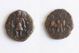 | Description / विवरण | On the obverse three headed Shiva standing holding staff in right hand and kamandal in left hand, on left side tree in railing is depicted. On the reverse two orbed Ujjayani symbol and on it Bull in standing form is depicted. |