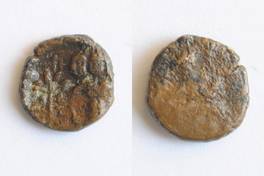 | Description / विवरण | On the obverse three headed Shiva standing staff one portion of mouth and left hand is out of flan and on his right side tree in railing is depicted. On the reverse one orbed Ujjayani symbol is depicted. |