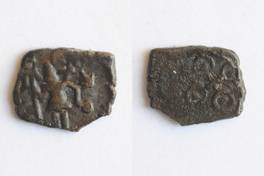 | Description / विवरण | On the obverse Shiva standing with spear in right hand and kamandal in left, on his left side six armed symbol is depicted. On the reverse dotted one orbed Ujjayani symbol is depicted. |