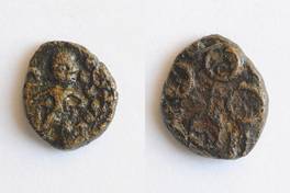| Description / विवरण | On the obverse Shiva standing with staff in right hand and kamandal in left hand, on left side a straight dotted border and dome part of six armed symbol is depicted. On the reverse one orbed Ujjayani symbol is depicted. |