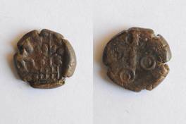 | Description / विवरण | On the obverse Deer standing in front of tree in railing. On the reverse two orbed Ujjayani symbol is depicted. |