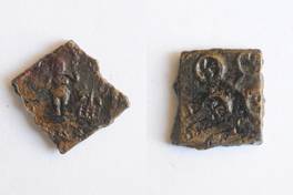 | Description / विवरण | On the obverse Godess standing with makar in upper left hand, right hand in akimbo, on her left side tree in railing and below fish in river. On the reverse one orbed Ujjayani symbol, swastik in each arm is depicted. |