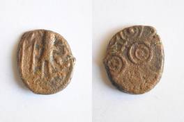 | Description / विवरण | On the obverse Shiva standing with spear in right hand and kamandal in left, below fishes in river shown. On the reverse dotted two orbed Ujjayani symbol is depicted. |