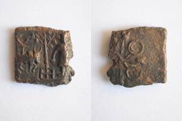 | Description / विवरण | On the obverse tree in railing in front of bull and above bull dhwaj, on left side Shiva standing with staff, in right hand left portion if out of flan. On the reverse one orbed Ujjayani symbol. In between two orb makar is depicted. |