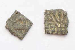 | Description / विवरण | Obverse not clearly visible. Three acrhes hill with crescent three leaves tree and holocross is depicted in the reverse. |