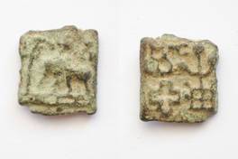 | Description / विवरण | On the obverse Elephant standing in front of a pole above swastik, staired stand is depicted. On the reverse holo cross, three arched hill with crescent, three leaved tree in a vase is depicted. |