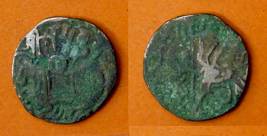 | Description / विवरण | Descrpn./Obv Recumbent bull facing left, wearing jhula (saddle cloth), with trisula (trident) symbol on rump. Above, legend in Sarada script Sri Samantadeva . Descrpn./Rev Rider with lance on caparisoned horse facing right. On left, Sarada letter bhi and on right, Sarada letter ta |