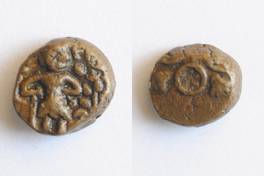 | Description / विवरण | On the obverse Shiva standing with staff in right hand and kamandal in left hand, on right side tree is depicted. On the reverse one orbed Ujjayani symbol, five figures symbol in between two orbs is depicted. |