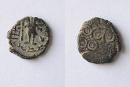 | Description / विवरण | On the obverse Shiva standing with spear in right hand and kamandal in left, on his right side tree in railing and a line of makar below. On the reverse two orbed Ujjayani symbol is depicted. |