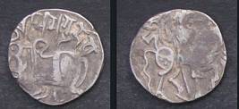 | Description / विवरण | Descrpn./Obv Recumbent bull facing left, wearing jhula (saddle cloth), with trisula (trident) symbol on rump. Above, legend in Sarada script Sri Samantadeva . Descrpn./Rev Rider with lance on caparisoned horse facing right. On left, Sarada letter bhi and on right, Sarada letter ta |