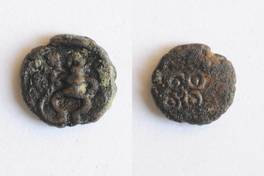 | Description / विवरण | On the obverse Shiva in dancing posture. On reverse dotted one orbed Ujjayani symbol is depicted. |