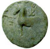 | Description / विवरण | Horse symbol with partly abraded legend. Three arched hill cut off. Obverse Horse with slightly raised ears standing to its right, Srivatsa symbol above and triangular standard infront. The legend reads ku ta sa ma ha ta. Reverse Two arched hill but only one hill is visible with fainted dots with a wavy lines below. |