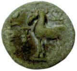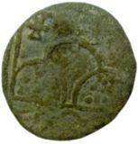 | Description / विवरण | Horse symbol with slight abraded legend. Three arched hill partly cut off. Obverse Horse standing to its right with slightly raised ears, Srivatsa symbol above and triangular standard infront. The legend reads sa ma ja sa. Reverse Triangular standard symbol on three arched hill with 6 dots in the two lower arches and two dots in the top arch, a wavy lines below. All are enclosed by a double line square. |
