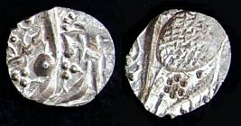 | Description / विवरण | Descrpn./Obv In the centre, a chhatra with Sa and Ta in Gurumukhi script on the left and right of its shaft; traces of the Persian legend seen on the obverse of the bigger Nanakshahi coins of Amritsar mint are also seen. Descrpn./Rev Big peepal leaf and traces of the Persian legend seen on the reverse of the bigger Nanakshahi coins of Amiritsar mint - Shri Amritsarjiv zarb [VS Year] Takht maimanat julus manus Akal Bakht. Especially traces of alif of Akal and te of Takht and maimanat are seen |
