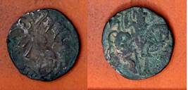 | Description / विवरण | Descrpn./Obv Recumbent bull facing left, wearing jhula (saddle cloth), with trisula (trident) symbol on rump. Above, legend in Sarada script Sri Samantadeva . Descrpn./Rev Rider with lance on caparisoned horse facing right. On left, Sarada letter bhi and on right, Sarada letter ta |