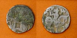 | Description / विवरण | Descrpn./Obv Recumbent bull facing left, wearing jhula (saddle cloth), with trisula (trident) symbol on rump. Above, legend in Sarada script Sri Samantadeva . Descrpn./Rev Rider with lance on caparisoned horse facing right. On left, Sarada letter bhi and on right, Sarada letter ta |
