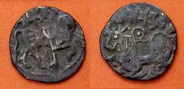 | Description / विवरण | Descrpn./Obv Recumbent bull facing left, wearing jhula (saddle cloth), with trisula (trident) symbol on rump. Above, legend in Sarada script Sri Samantadeva . Descrpn./Rev Rider with lance on caparisoned horse facing right. On left, Sarada letter bhi and on right, Sarada letter ta |