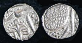 | Description / विवरण | Descrpn./Obv In the centre, a chhatra with Sa and Ta in Gurumukhi script on the left and right of its shaft; traces of the Persian legend seen on the obverse of the bigger Nanakshahi coins of Amritsar mint are also seen. Descrpn./Rev Big peepal leaf and traces of the Persian legend seen on the reverse of the bigger Nanakshahi coins of Amiritsar mint - Shri Amritsarjiv zarb [VS Year] Takht maimanat julus manus Akal Bakht. Especially traces of alif of Akal and te of Takht and maimanat are seen |