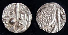 | Description / विवरण | Descrpn./Obv In the centre, a chhatra with Sa and Ta in Gurumukhi script on the left and right of its shaft; traces of the Persian legend seen on the obverse of the bigger Nanakshahi coins of Amritsar mint are also seen. Descrpn./Rev Big peepal leaf and traces of the Persian legend seen on the reverse of the bigger Nanakshahi coins of Amiritsar mint - Shri Amritsarjiv zarb [VS Year] Takht maimanat julus manus Akal Bakht. Especially traces of alif of Akal and te of Takht and maimanat are seen |