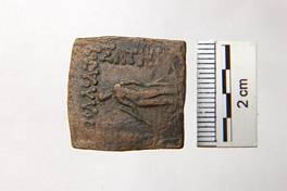 | Description / विवरण | Obverse- Apollo standing facing, in right hand arrow, in left hand bow resting on ground. Greek legend. Reverse- In dotted square, tripod-levels. |