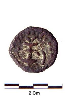 | Description / विवरण | Obverse- Legend Kot inside a circle of dots. Reverse- Standing human figure on the right with a halo around his head. His right hand raised up above is seen a line of dots. |