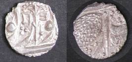 | Description / विवरण | Descrpn./Obv In the centre, a chhatra with Sa and Ta in Gurumukhi script on the left and right of its shaft; traces of the Persian legend seen on the obverse of the bigger Nanakshahi coins of Amritsar mint are also seen. Descrpn./Rev Big peepal leaf and traces of the Persian legend seen on the reverse of the bigger Nanakshahi coins of Amiritsar mint - Shri Amritsarjiv zarb [VS Year] Takht maimanat julus manus Akal Bakht. Especially traces of alif of Akal and te of Takht and maimanat are seen |