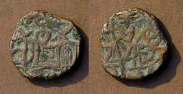 | Description / विवरण | Descrpn./Obv Recumbent bull facing left, wearing jhula (saddle cloth). Above, legend in Sarada script Sri Samantadeva (in cursive letters, mostly truncated and seen partially or off the flan). Descrpn./Rev Rider with lance on caparisoned horse facing right. |