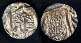| Description / विवरण | Descrpn./Obv In the centre, a chhatra with Sa and Ta in Gurumukhi script on the left and right of its shaft; traces of the Persian legend seen on the obverse of the bigger Nanakshahi coins of Amritsar mint are also seen. Descrpn./Rev Big peepal leaf and traces of the Persian legend seen on the reverse of the bigger Nanakshahi coins of Amiritsar mint - Shri Amritsarjiv zarb [VS Year] Takht maimanat julus manus Akal Bakht. Especially traces of alif of Akal and te of Takht and maimanat are seen |