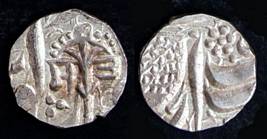 | Description / विवरण | Descrpn./Obv In the centre, a chhatra with Sa and Ta in Gurumukhi script on the left and right of its shaft; traces of the Persian legend seen on the obverse of the bigger Nanakshahi coins of Amritsar mint are also seen. Descrpn./Rev Big peepal leaf and traces of the Persian legend seen on the reverse of the bigger Nanakshahi coins of Amiritsar mint - Shri Amritsarjiv zarb [VS Year] Takht maimanat julus manus Akal Bakht. Especially traces of alif of Akal and te of Takht and maimanat are seen |