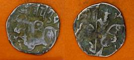 | Description / विवरण | Descrpn./Obv Recumbent bull facing left, wearing jhula (saddle cloth), with trisula (trident) symbol on rump. Above, legend in Sarada script Sri Samantadeva . Descrpn./Rev Rider with lance on caparisoned horse facing right. On left, Sarada letter bhi and on right, Sarada letter ta |
