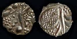 | Description / विवरण | Descrpn./Obv In the centre, a chhatra with Sa and Ta in Gurumukhi script on the left and right of its shaft; traces of the Persian legend seen on the obverse of the bigger Nanakshahi coins of Amritsar mint are also seen. Descrpn./Rev Big peepal leaf and traces of the Persian legend seen on the reverse of the bigger Nanakshahi coins of Amiritsar mint - Shri Amritsarjiv zarb [VS Year] Takht maimanat julus manus Akal Bakht. Especially traces of alif of Akal and te of Takht and maimanat are seen |